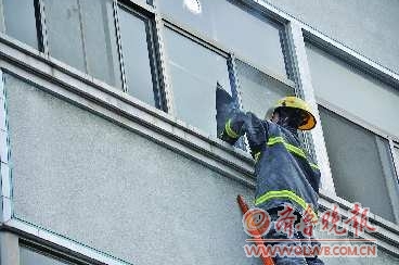 本报2110110消息 (记者 陈鸿儒 通讯员 马常义) 8日傍晚,金乡县城区一居民小区一栋居民楼的三楼房内出现火苗,但家中无人而且门窗紧闭,附近居民发现后报警。接警后,金乡消防迅速赶到现场,由于无法联系屋主,只好使用消防梯破窗进入屋内,将火灾隐患排除。