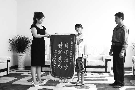 5日,利津县西宋村的程德资和女儿带着一面锦旗送到了蔚蓝物业公司。据了解,该物业公司得知程德资家庭困难,13岁的小女儿需要上学,一家人住在三间小平房内,徐经理给程德资捐款1000元。为答谢徐经理的善心,程德资特地赠送上一面锦旗。