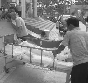 在该院CT拍片室,记者见到了一名杨姓工人,他头上和腿上多处受伤流血,吸着氧气,紧闭着双眼,不能回答医生问话。医生说,这名工人头部受到剧烈撞击,伤情最严重。