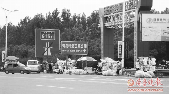 本报8月9日讯(见习记者 化玉军) 每年7月至9月是日照市的旅游旺季,许多外地游客驾车来日照旅游,卖泳圈泳衣的商贩们打起了在高速公路出入口附近沿街叫卖的主意,有的商贩甚至直接走到机动车道上叫卖,这让许多刚下高速公路的车主不得不紧急刹车,险象环生。