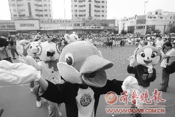 在13日啤酒节的开幕仪式上,一支由21届啤酒节所有吉祥物组成的巡游队伍引起了不少游客的注意。这21位吉祥物的扮演者全部是学生,其中最大的也不过20周岁,最小的只有17岁,今年刚刚被青岛理工大学录取。