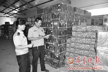 8月11日,郓城县公安局经侦大队经过连日缜密侦查,摸排布控,一举打掉一制售假冒白酒窝点,查获假冒“茅台”、“杜康”、“泸州”、“杏花村”、“洋河”等系列白酒13000余箱。图为民警正在清点假冒白酒数量。