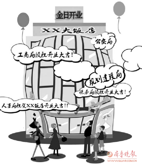 东明县该饭店用21条假条幅贺开业的做法绝非个案。网上曾流传一组张家界市武陵源区洗脚城开业的照片,该市市检察院、市法院、市地税局、市建设局、区检察院、区法院全都送了大红条幅。后来当地政府澄清条幅是商家自我炒作,与他们无关。话虽如此,但普通百姓还是感到疑惑。为什么商家搞经营,却偏偏要把和政府部门的关系拿出来显摆呢?到底是想表示自己后台有人,还是纯粹玩弄消费者?市场经济条件下商家经营的这种不自信的确值得重视!