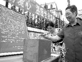 “是今天捐款吗?”上午不到9点,就有居民凑上前询问。募捐发起人之一的王佩霞告诉记者,10号倡议书贴到楼栋后,就不断有居民询问捐款事宜,而打到居委会的咨询电话也一直没断过。9点半,当募捐箱拿到现场后,前来捐款的居民早已排起了小长队。