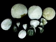 14日,记者来到李先生的店铺中,李先生将“驴宝”摆放在餐厅内的桌子上。记者看到,这些驴宝大的共有十二块,还有很多跟指甲般大小的小碎片,从外观上看这些驴宝犹如一堆鹅卵石,分别呈现球体和圆锥体,色泽光亮,干燥处呈银白色,湿润处则成黑褐色,在部分“驴宝”上还有淡淡的条纹。其中有三块体积较大的呈球形,分别重达1.93斤、1.4斤、0.98斤。