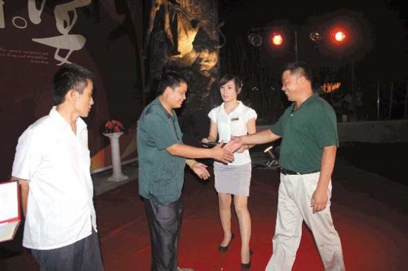 为回馈业主对翡翠城的大力支持和信任,翡翠城如期如数兑现了二期多层“老带新”赠送购物卡的承诺,更有两家业主一次获得3张500元购物卡。翡翠城始终以至诚之心待客,获奖业主激动的无以言表。随着颁奖仪式的进行,晚会也步入了一个新的高潮。