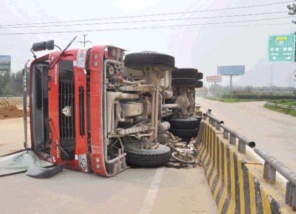 12日中午11时许,市区光岳北路一辆运土的工程车侧翻,把一辆电动车挤在隔离墩中间,骑电动车的人被送往医院。当天下午,事故车被拖走。