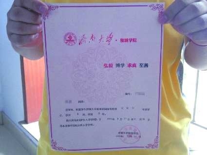 14日,李波(化名)向记者展示了自己12日收到的高考录取通知书,而他已于今年6月份从烟台某高校毕业。