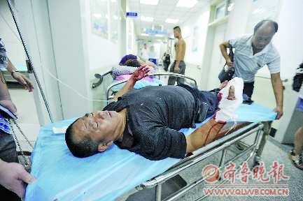 16日上午10点,记者赶到山东省立医院急诊科时,受伤的王三祥正躺在病床上等待治疗。尽管他举起的右手上缠着厚厚的纱布,但血还是不停地往外渗,顺着他的胳膊滴了一地。