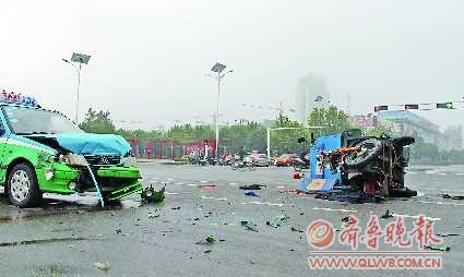 16日上午7时左右,在东风中路和湖滨南大道的交叉路口,一辆出租车和一辆去新湖路收垃圾的环卫车相撞,车体损毁较为严重,环卫工人随即被送往医院。据当时值班医生介绍,伤者神志比较清楚,脑部有血肿,腰和腿部有伤。