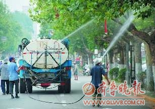 据介绍,本次喷药行动是对于东城区20多条主次干道进行喷洒,从15日就已经开始了,现在已喷洒了解放南路和文化路的部分路段,考虑到喷洒会影响行人行驶,从明后两天开始进行夜间喷洒,也希望市民理解配合,不过工作人员表示,喷洒的药物对人体无害。
