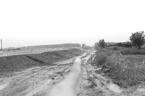 16日上午,记者来到杨柳雪镇风神庙陈家村。在风神庙陈家村村北,记者看到青苗和地上附着物已经清理完毕,约十几米宽的铁路路基已经建起。由于刚下过雨,地基上面一片泥泞。