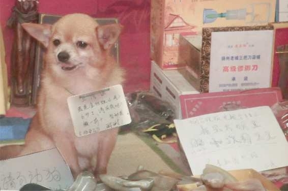 作品描述:晚上逛夜市时,看见一只“兼职”小狗,而且是“持证上岗”!