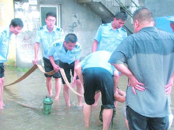 16日上午,有群众报警称,昨夜大雨,西四路五干桥路西园林公司院内房屋被淹。胜园派出所接到指令后,立即出动警力10人、警车两辆,迅速赶往现场,冒雨排水。经过一上午的努力,终于将房内积水顺利排出,最大程度地挽回了该公司的财产损失。 本报通讯员 马霞 宋星刚 本报记者 嵇磊 摄影报道