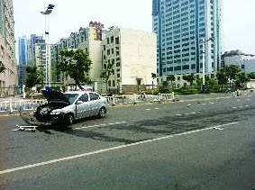 据目击者刘先生介绍,当时这辆车是由南向北行驶,也不知道怎么回事,突然就一头撞到了护栏上。车祸发生后,车上下来两个人,看起来都没有受伤。