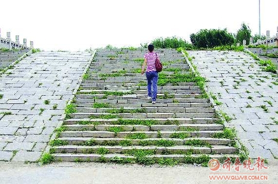 一位正在绿化带内清除野草的园林工人告诉记者,以赵王河为界,此桥东侧由开发区园林处负责,西侧由牡丹区园林处负责。较为干净的一侧台阶正是由他清理的,“最近野草长得很快,我这一个月已经清理两、三次了。”这位园林工人说,由于不在其工作范围内,对另一侧桥上的杂草清理情况他也不清楚。