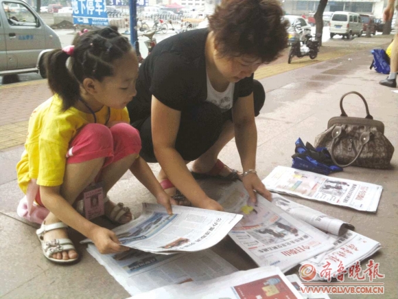 16日早上7点左右,在泰山火车站附近的邮局,报童许依彩正在妈妈的帮助下抓紧时间插报纸。许依彩告诉记者,她通过努力已经发展了许多固定客户。“每天早上他们都会到妈妈店里取报纸。”许依彩说,为了守信用,有时候报纸卖完了,老顾客到店里买不到报纸,她会亲自出去到报摊上给他们买报纸补上。“答应别人的事情就一定做到,不然以后大家就不信任我了。”许依彩用稚嫩的声音说。
