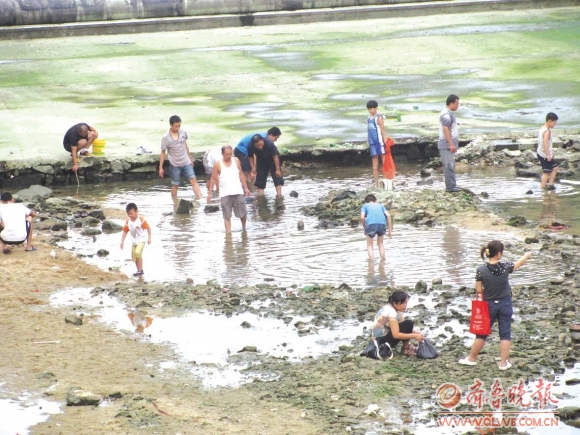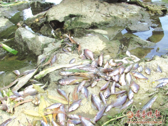 17日,新泰市平阳河上游的水库蓄水,下游水位下降了两三米,露出大片淤泥和石头,大量鱼搁浅在河滩上。见此情景,不少市民纷纷下河打捞、捡拾。新泰市环保局污染控制科张忠涛工程师介绍,因为近期天气变化频繁,为了调控水位的需要,对上游水库进行了蓄水,造成了下游水位明显下降。