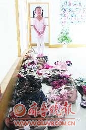 在考场外,摆放着一排女孩子的鞋。