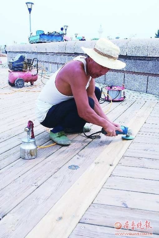 “现在灯塔景区内景观已基本修复。台风过后,我们就开始抢修。对海浪卷走的完好木板和石柱进行了打捞再利用。缺失的进行及时订购,争取尽快恢复景区景观。”施工现场的工作人员说。现在木栈道铺设作业已结束,对新木板还需喷涂防腐油。被海浪冲散的巨石,通过吊车和人工搬抬,已重新排放在岸堤上。
