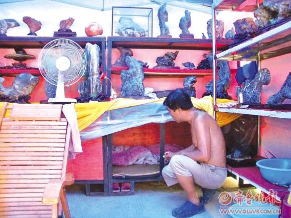 被盗时,奇石参展商就睡在展台下面的空间中。