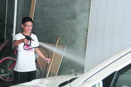 原本认为洗车很容易,一上手才发现,平日里看似简单的洗车却是由许多道工序组成的,高压水枪喷洗、涂抹水蜡、再次喷洗、刮掉车表面的水、用毛巾擦车,最后还得用鹿皮再细致地擦一遍。