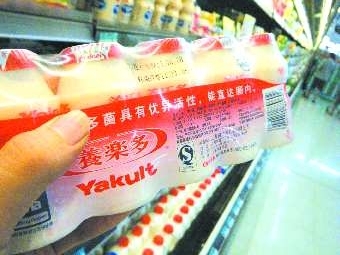 17日下午,在南大街一大型超市的酸奶制品区,促销人员正忙着请周边的消费者品尝养乐多。记者看到,这种5瓶为一件的饮料,配料表中写着:水、白砂糖、脱脂奶粉、葡萄糖、食品香精、干酪乳杆菌。促销人员称,每瓶含有100亿活性乳酸菌,可调节肠道功能,深得年轻人和孩子们的喜爱。但促销人员却否认产品是保健食品,并说适合所有人群饮用。