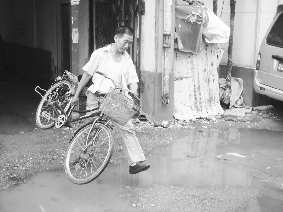 17日上午,记者来到市区红旗路与商城路交会处的兰山区商务总公司家属院。走到3单元时,记者犯了难:路面上密密麻麻的全是水坑,不知道在何处下脚。