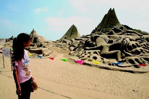 17日,在潍坊市滨海欢乐海旅游度假区,一组沙雕作品吸引了市民的目光。沙雕公园将在20日开幕的国际风筝冲浪锦标赛上正式亮相,不少市民前来先睹为快。据介绍,沙雕公园的创作以风筝冲浪及海洋运动为主题,由国内一流设计师根据世界风筝发展的历史典故,专为潍坊滨海旅游渡假区量身定做,创作用沙3000立方米,整体占地8000平方米。 本报记者 孙国祥 孙翔 摄影报道