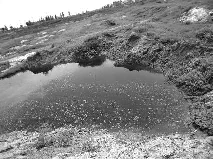 赵延高称他曾参与管道维修,他告诉记者,村里的水之所以出现这种情况,跟村里的一个污水塘有关。赵延高说,被挖断的自来水管道途经一个人工挖掘的污水塘后进入村里。塘中污水主要由一家食品厂排放的废水和堆放池边的工业废渣混合而成。一周前,挖掘机在给污水塘修坝隔水时不小心将原本埋于土中的自来水管道挖断,等维修好后,就出现了这种情况。