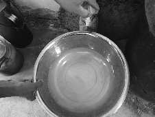 17日,记者来到赵家庄子村,看到了刚干活回来的村民赵延高,赵延高告诉记者,一周前村中的自来水突然停水了,后来被告知村里的自来水管道被挖掘机挖断了。16日上午七八点钟,自来水管道修好后,村里打开总闸放水,一上午过去,自来水管道中放出的水一直都是散发恶臭的暗红色污水,水中浮了一层泡沫,偶尔还会有红色线虫随水流出。17日下午1点,赵延高又打开自家阀门接自来水,此时自来水情况有所改变,但依旧浑浊不清。