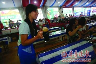 穿上小围裙,端起两扎酒,绕过桌子,在最快的时间里给客人倒上啤酒……17日,记者上阵当了一个小时的酒娘,感受到了其中的不易和艰辛。