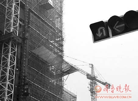 青岛市山东路某路口,一热销的在建楼盘已经封顶。