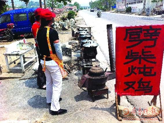 市民张自强告诉记者,前几个周末,他带着朋友驾车从仲宫大桥到西营镇,本想在途中找个“农家乐”好好品尝一下农家风味,但他发现路边的饭店都是“劈柴炖鸡”、“松娥炖鸡”、“火头锅炖鸡”、“炖鸡一绝”等等,粗略一数,五百米以内摆了十多家“农家乐”炖鸡牌子,一时令张