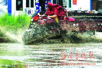 18日,一场秋雨再降泉城,虽然雨势不急,往常容易积水的路段也大多安然度过,但花园路东段却是雨水汇集,又变成了“河”。“这段路没有下水道,有点雨水就在路面存着,逢雨便成河。”市民林先生对路面流成河的情况已经见怪不怪了。图为一辆三轮车在积水很深的马路上疾驰而过,水花四溅。    本报记者 郭建政 尹明亮 毛旭松 摄影报道