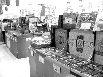 对于要价上千元的豪华月饼,这位促销人员说,主要是因为制作材料高昂。比如有的以鲍鱼为原料,成本高,价格自然就高。“现在不到销售旺季,等到中秋前几天,来购买精装月饼的人才多,多是为了送礼。去年每天的销售额在15万元左右,以南沪和巧媳妇等本地品牌为主,外地品牌月饼销量不佳。”