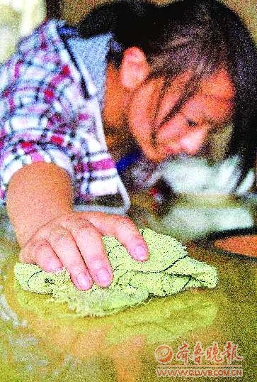 18日早上8点,天空下着小雨,穿着一件花色上衣的汪路路,快速地向她工作的火锅店跑去。对于两个月之前找到的这份工作,19岁的汪路路非常珍惜,“这家火锅店提供食宿,一个月1千元的工资可以都攒起来,虽然累点但我很喜欢这份工作。”汪路路边利索地收拾着桌子边向记者说。