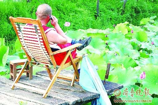 作者:时枫地点:微山湖畔自述:一位男子在荷花池边与朋友通电话,真是悠闲自得啊!