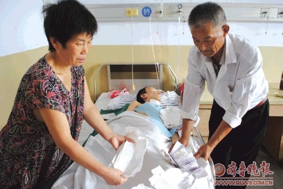 18日,今年已经76岁的赵和安,因为植物人继子即将停药而老泪纵横。他告诉记者,因为已经欠了医院二十多万元医疗费,他已经无能为力。事情的起因,还要从一年前说起。因与别人有矛盾,2010年8月4日,朱世兵被岱岳区王某、张某等三人骗至岱岳区山口镇一景区内,他们采用脚踢、皮带抽、树枝打等方式,将朱世兵殴打致伤,经鉴定为颅脑重伤,截至目前已经昏迷一年之久。后来,王某等人分别被判了刑,还被判赔偿朱世兵经济损失202543.3元。而这笔赔偿,赵和安却一直未能拿到。