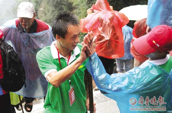 爬过泰山的人都知道,在登山过程中,最难爬的莫过于从中天门到南天门,尤其是十八盘。不足1公里的路程,却有1600多个台阶,垂直高度达400多米。普通人爬上去尚且累得气喘嘘嘘,而对于身体有残疾的人来说,其难度无疑更大。