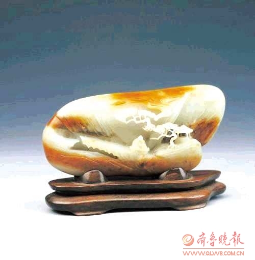 天然和田玉经过天然的搬运、氧化等作用,形成了从黑、褐、深红、黄到浅黄各色各样、深浅不一的皮色。这些皮色的形状和分布又不尽相同,有的整片覆盖,有的斑驳陆离,还有的可能只是局部的零星一点。其结果,就是色彩的赏心悦目。
