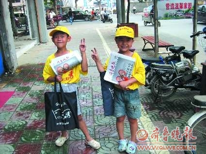 大约过了一个钟头,两个小家伙把当天的报纸全部卖光了。一直远远跟着的付圣乔的妈妈褚女士告诉记者,两个孩子挺让人放心的。“参加活动就是想让他们锻炼一下,体验一下生活,看到孩子在活动中收获了那么多的快乐,我也觉得很开心。”