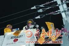 17日晚10时20分,滕州供电部抢修中心接到报修电话,地处龙泉路的10千伏阳光线突然停电。10分钟后,4名抢修人员赶到现场,经过巡视发现该线路52号塔一跌落式开关上盖烧坏。因该塔为同杆架设,上有35千伏带电线路。抢修人员随即调用带电作业车进行紧急抢修。经过十余分钟紧张的抢修,于11时30分抢修完毕并及时恢复供电。