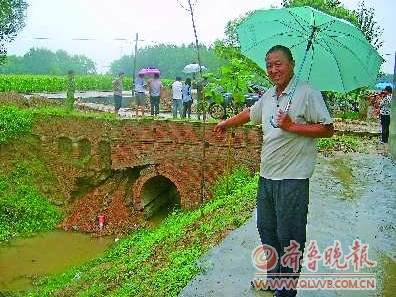“很多车,晚上看不见的,或是车技不行的就会卡到这个坑里。”赵治珠说,他家住在这座桥的西头,只要车被卡他就会出来帮忙。为了汽车夜晚通行,他还专门在桥头装了一个灯泡。“我们秋收也成问题了,玉米收获了,车过不去,只能扛。”