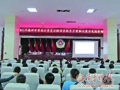 本报8月18日讯(记者 董传同 通讯员 牟永来) 18日,德州市考录公务员报考公检法合并类职位的106名考生,以高低分的次序依次选择岗位。为了增加工作的透明度,高分先选实行“现场直播”,考生做完选择后,选择结果会立即出现在大屏幕上。
