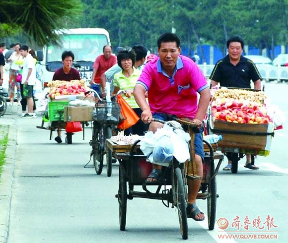 18日,在海港客运站附近,很多商贩和发放传单人员都聚集在此,造成道路拥堵,当城管执法车来检查的时候,商贩们顿时一哄而散。城管二大队负责人说对于这些商贩主要以警告为主,警告三次不听者会以罚款处理。
