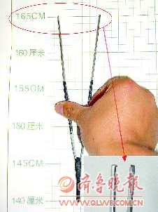 来某作案使用的大镊子,镊子前头带有卡口。本报记者 陶相银 摄