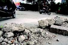 18日,在东风街与新华路附近一居民巷外,一排碎石块挡住了一半的道路,给过往的路人带来不便。附近居民告诉记者,为了新铺的路面不被压损,施工单位所幸把这些修路挖出的碎石块变成“围挡”,挡在新修路面前方。路面得到了保护,但给夜间出行的车辆和行人带来不小的安全隐患。