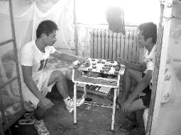 在卧室桌子上还摆放着两台电脑(没有网线,只能看电影),每次来基地时杨远航都会用优盘拷贝一些电影。看电影成为他们最大的消遣,与此同时,二人还借来象棋,闲来无事摆上一局,以此打发时光。