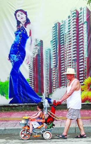 事件:一位老人推着孩子从巨幅广告牌前经过,广告牌上的美女吸引了孩子的目光。